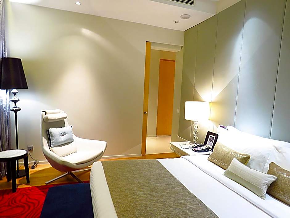 The stylish suite features a living and dining area, air conditioning and a walk-in closet. It also has a safety deposit box. The private bathroom is fitted with a bathtub, a shower and a digital weight scale.